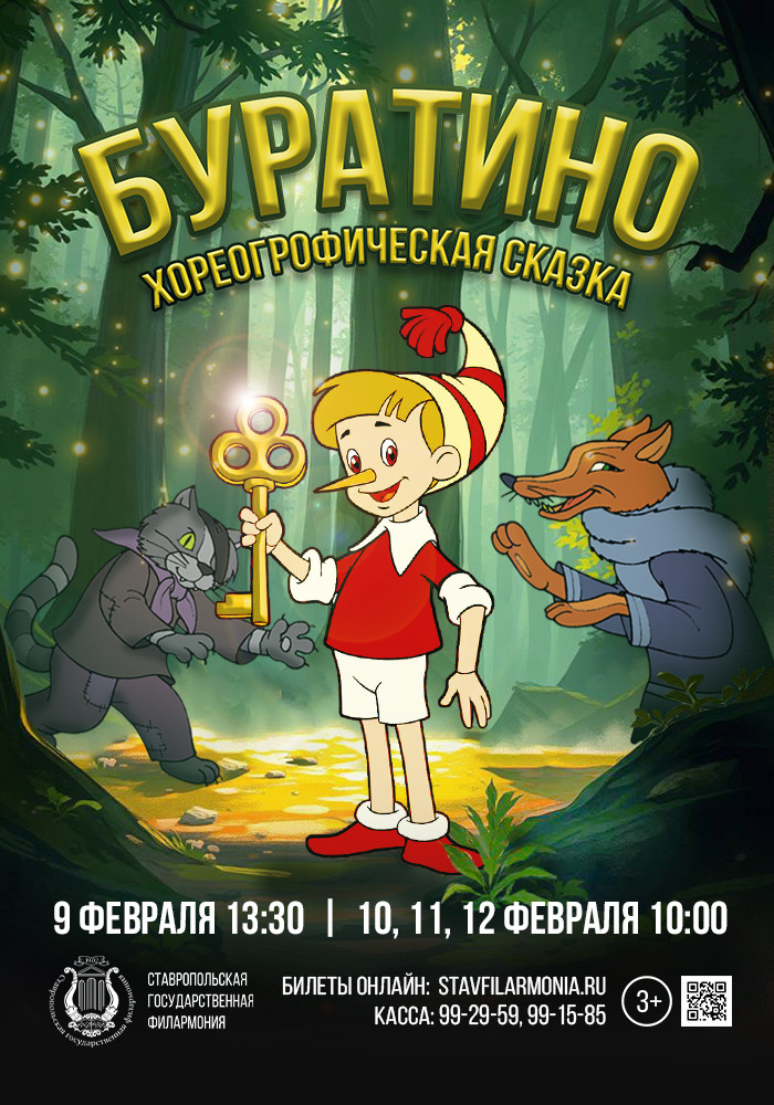Любимые герои сойдут со страниц и экранов и предстанут перед вами во плоти, чтобы рассказать знакомую всем с детства увлекательную и поучительную историю. Можете не сомневаться, без улыбки и прекрасного настроения не останется никто. Красивая музыка, нарядные костюмы, множество танцев и увлекательный сюжет о приключениях Буратино и его друзей подарят прекрасное настроение всем без исключения.