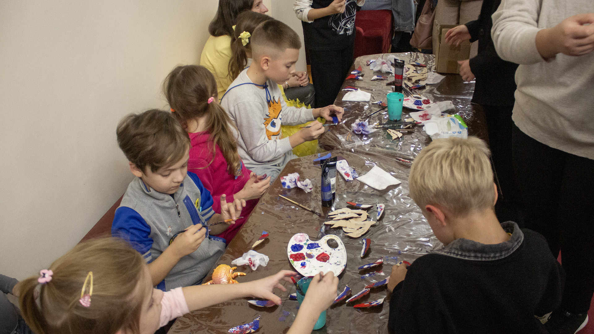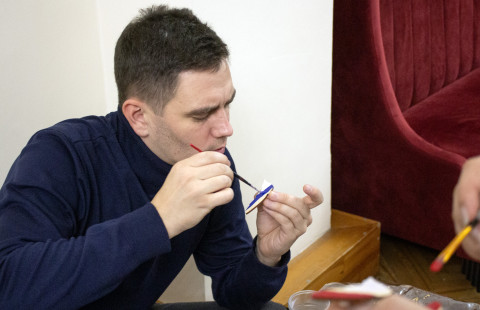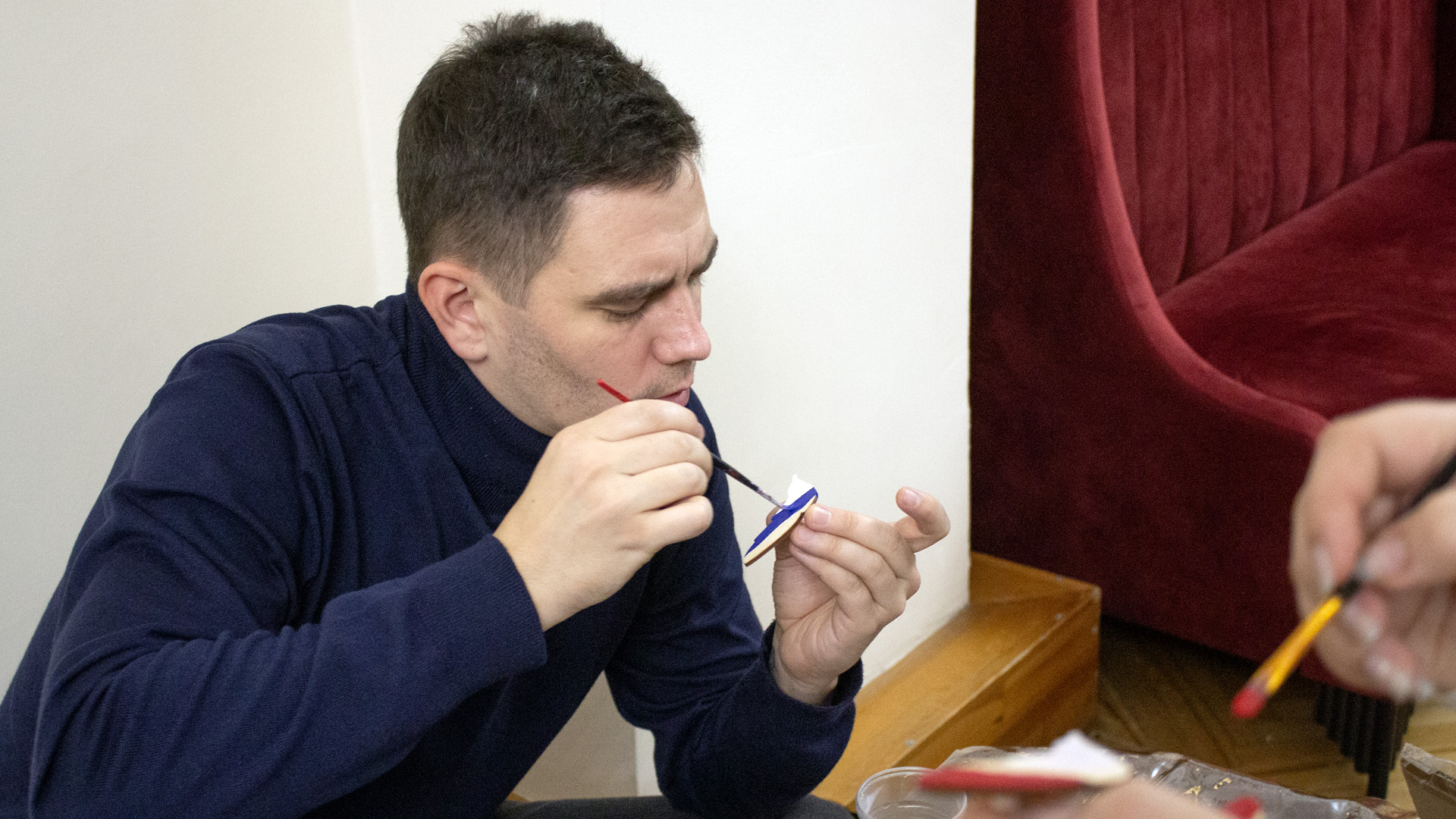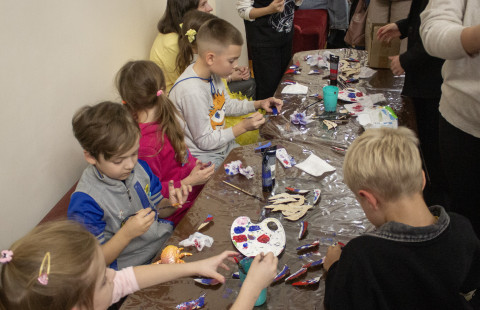 Также, во время мастер-класса мастеров союза «Вдохновение», гости вечера могли своими руками изготовить изделия декоративно-прикладного творчества – броши из кружева и раскрасить гипсовые фигурки. Завершила вечер видеотрансляция выступления Государственного академического ансамбля танца «Вайнах».