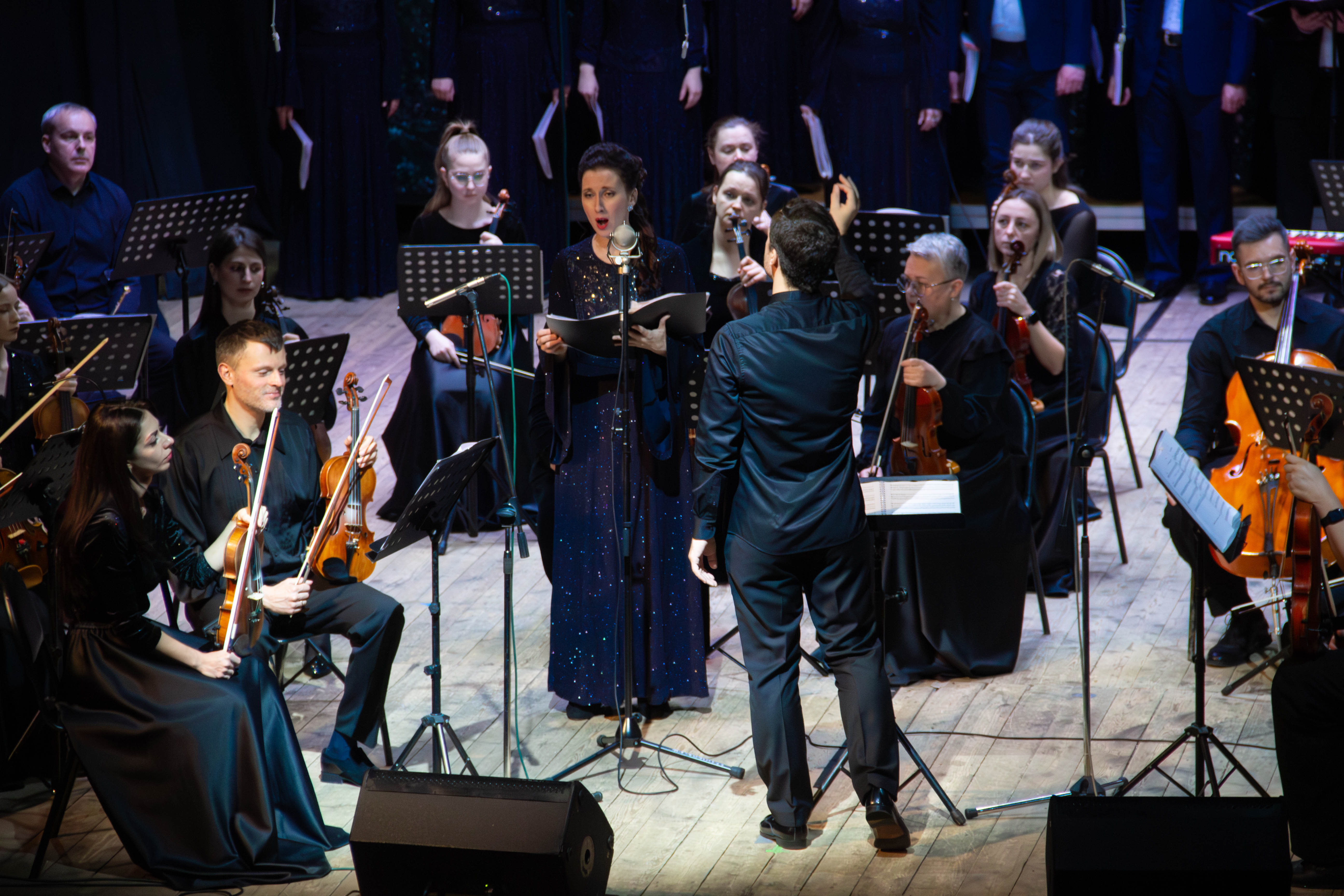 Программа вечера предлагала ощутить контраст между эстетикой разных художественных эпох – от барокко до современности. В первом отделении были представлены сочинения для хора на латинском языке: «Exsultate, jubilate» и «Ave Maria» британского композитора Карла Дженкинса, «Ubi Caritas» норвержца Ола Гжейло, «In Memoriam» француза Бруно Куле, известного своей музыкой к фильмам, и другие.